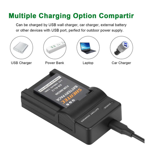 SHENTEC Li-ion EN-EL12 EL12 Battery Charger for Nikon Coolpix