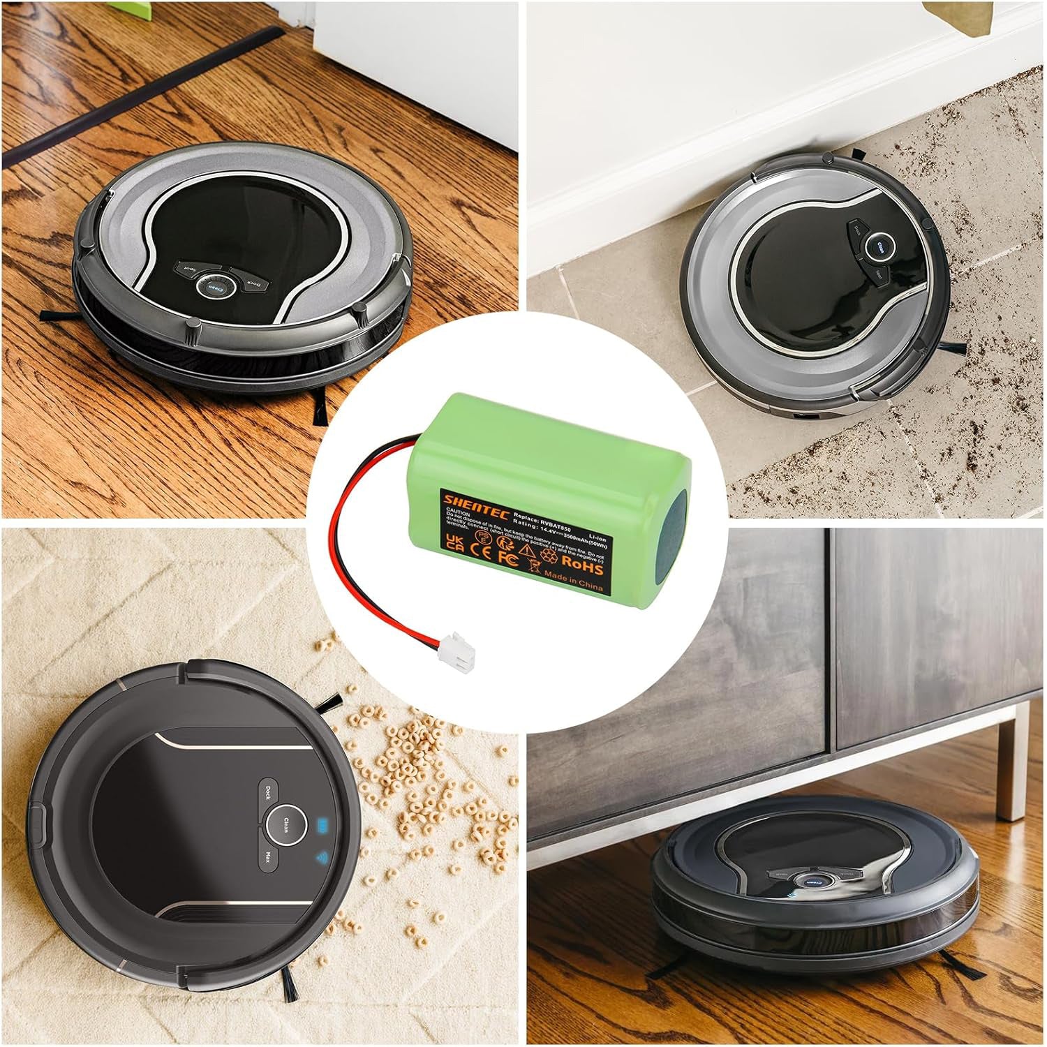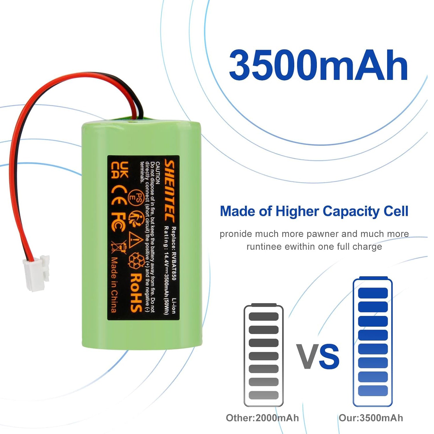 SHENTEC 3500mAh Battery RVBAT850 Replacement for Shark Ion Robot Vacuum Cleaners