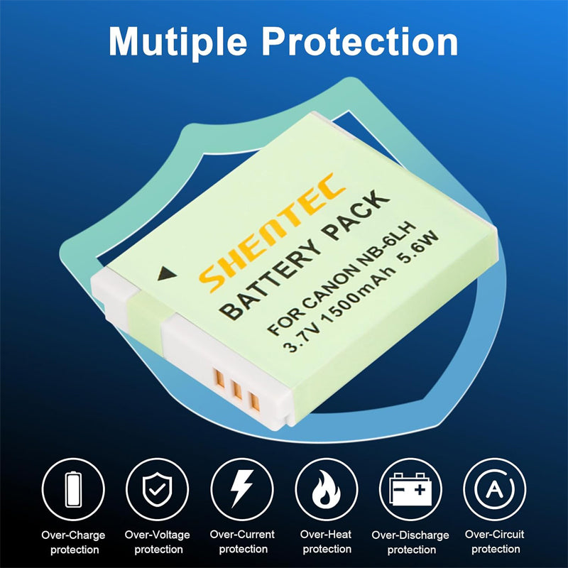SHENTEC Battery NB-6L, NB-6LH + USB LCD Charger for Canon PowerShot