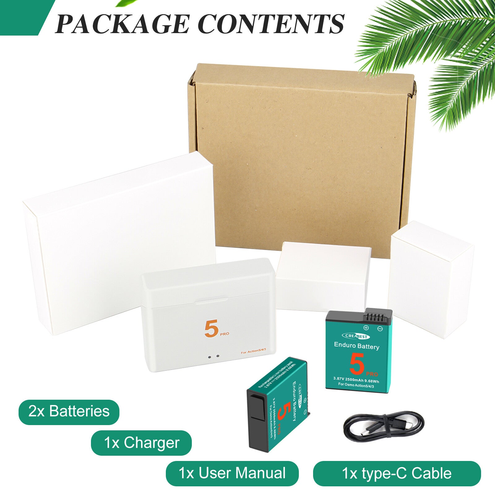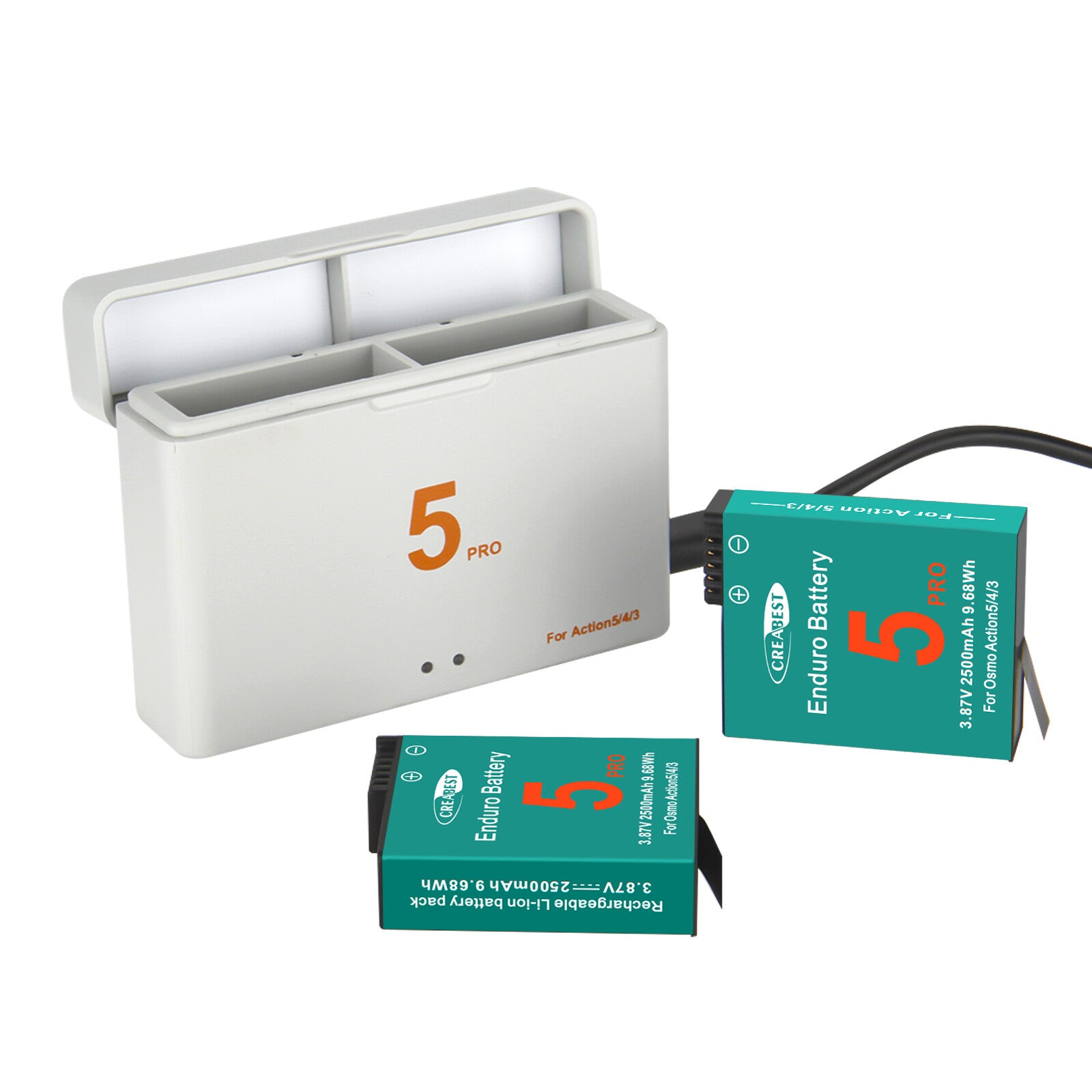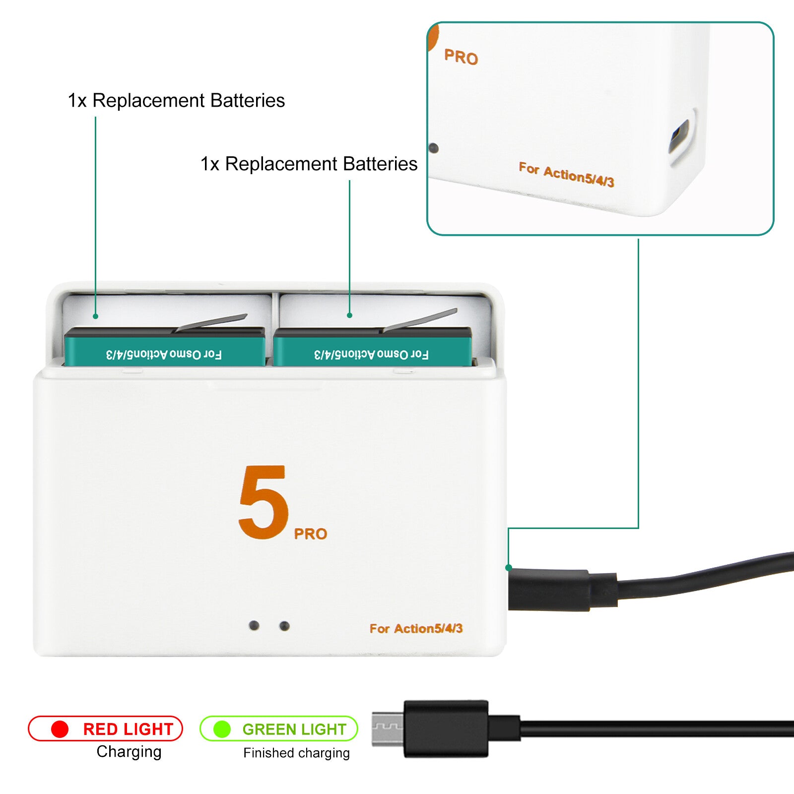 - 2 voll kompatible Zusatzakkus: 2 Ersatzakkus mit einer Kapazität von 3.87V, 2500mAh, Ersatzakku mit sehr hoher Kapazität für DJI Osmo Action. 100% kompatibel beim Austausch Ihres Originalakkus