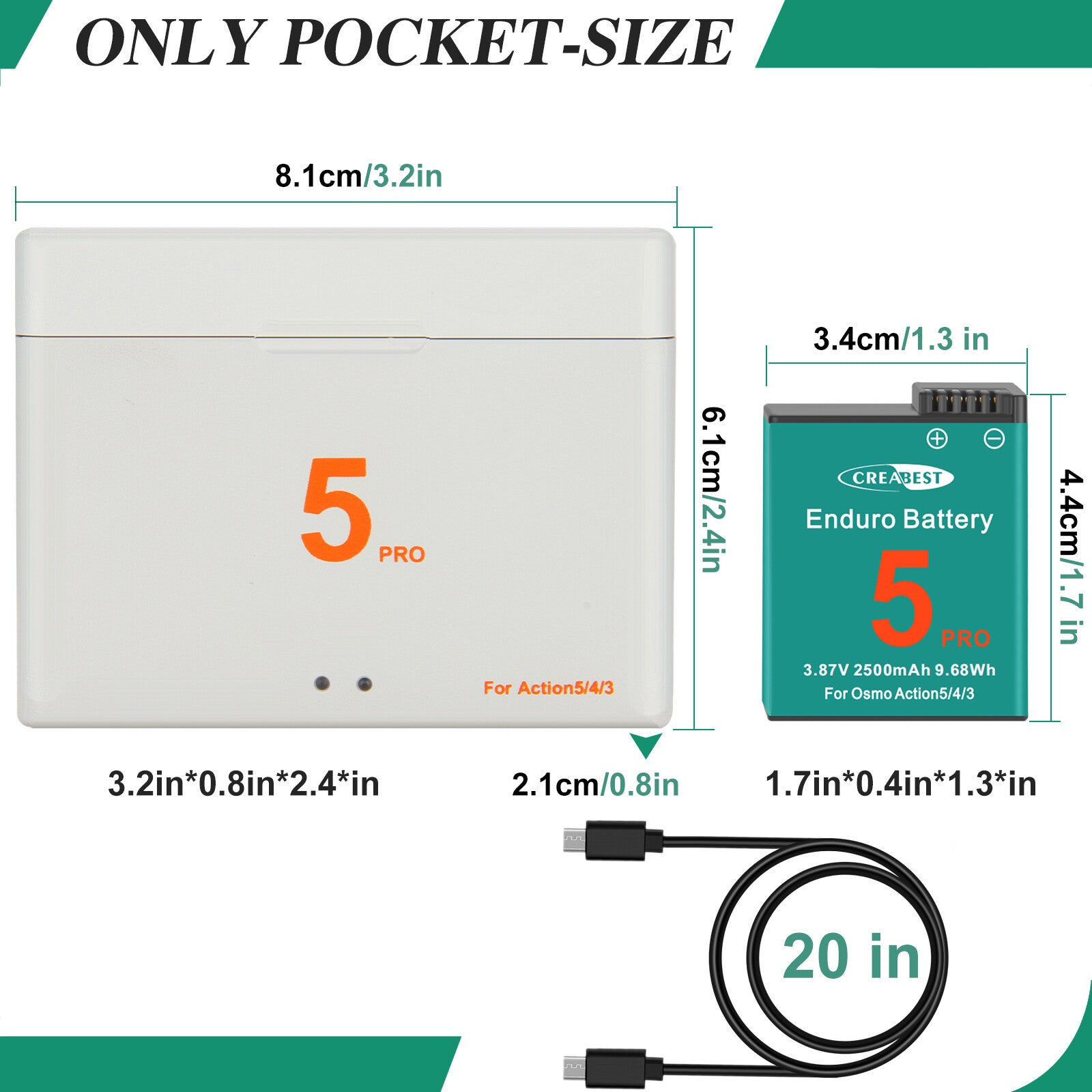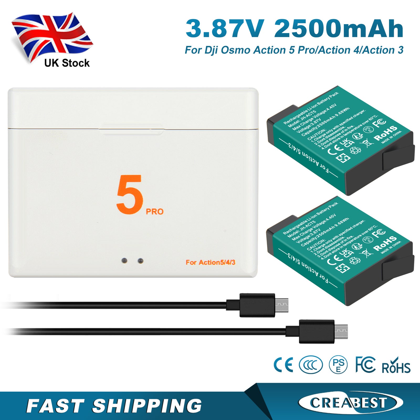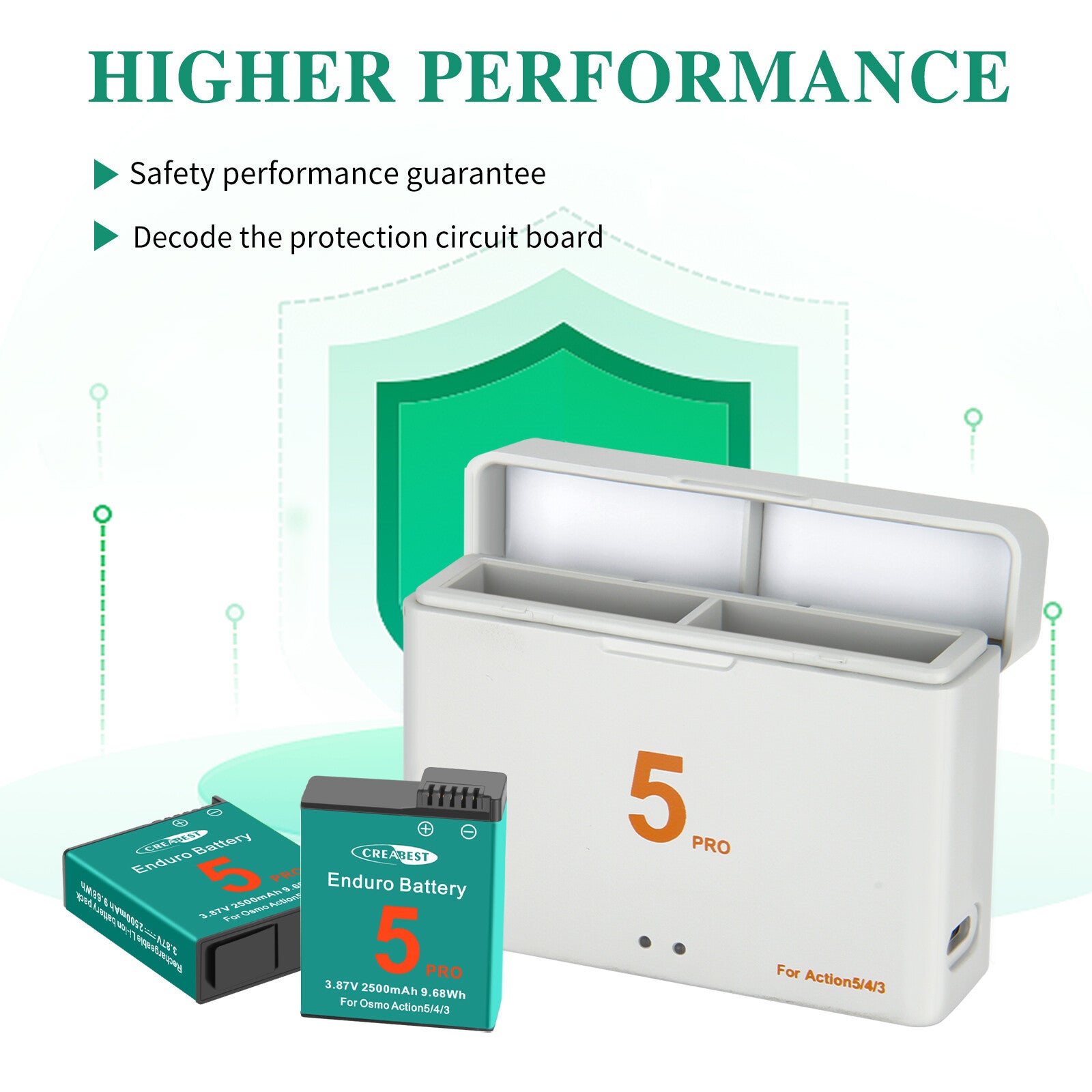 - 2 voll kompatible Zusatzakkus: 2 Ersatzakkus mit einer Kapazität von 3.87V, 2500mAh, Ersatzakku mit sehr hoher Kapazität für DJI Osmo Action. 100% kompatibel beim Austausch Ihres Originalakkus